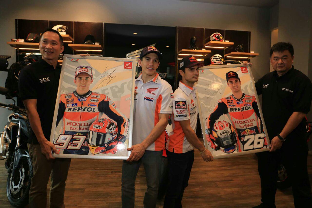 Kedua pembalap diterima oleh CEO Wahanaartha Group, Robbyanto Budiman dan Chief Of Marketing Wahana Honda, Edi Setiawan. Secara special, Marquez dan Pedrosa membubuhkan tanda tangan pada motor Honda CBR250RR berwarna Mat Gun Powder Metallic yang dipamerkan di showroom Wahana Honda Gunung Sahari.