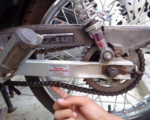 Selain itu jika rantai motor kendor dapat melakukan penyetelan ulang dan selalu berikan pelumas rantai AHM Chain Lube 70 ML agar rantai sepeda motor bisa terhindar dari aus dan mencegah timbulnya karat yang disebakan oleh hujan