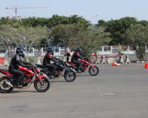 2. Gunakan peralatan berkendara seperti halnya akan bepergian yaitu helm, sarung tangan, jaket, celana panjang, dan sepatu. Bila perlu gunakan protektor untuk berjaga-jaga. (jangan sampai karena latihan kita malah celaka);