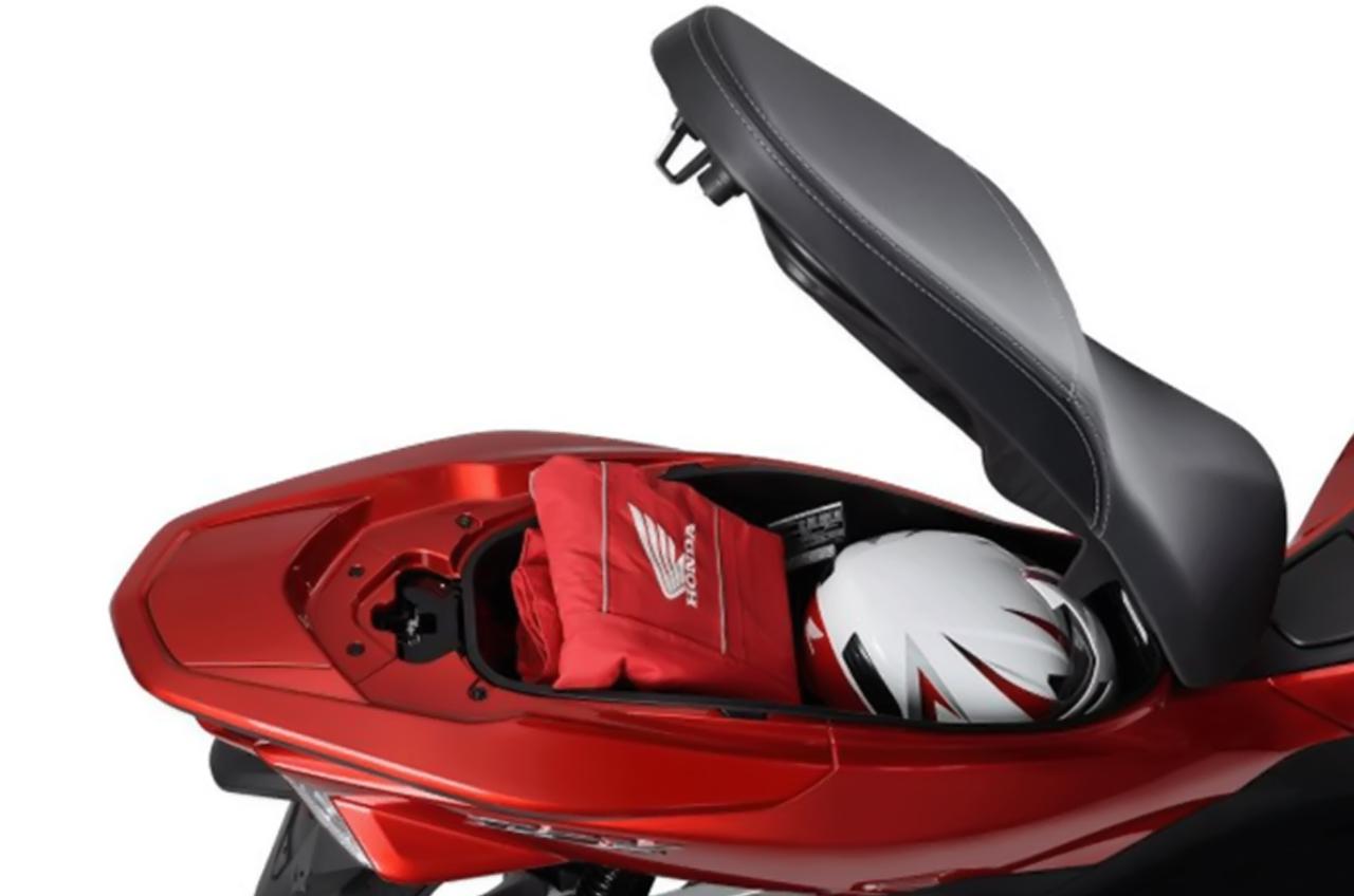Bagasi PCX 160 mampu menampung helm full face. Selain itu, masih tersisa ruang untuk menaruh barang lain, seperti jaket, tas kecil, atau jas hujan. Barang-barang kecil lainnya juga masih bisa ditampung, karena desain bagasinya yang memanjang ke belakang.
