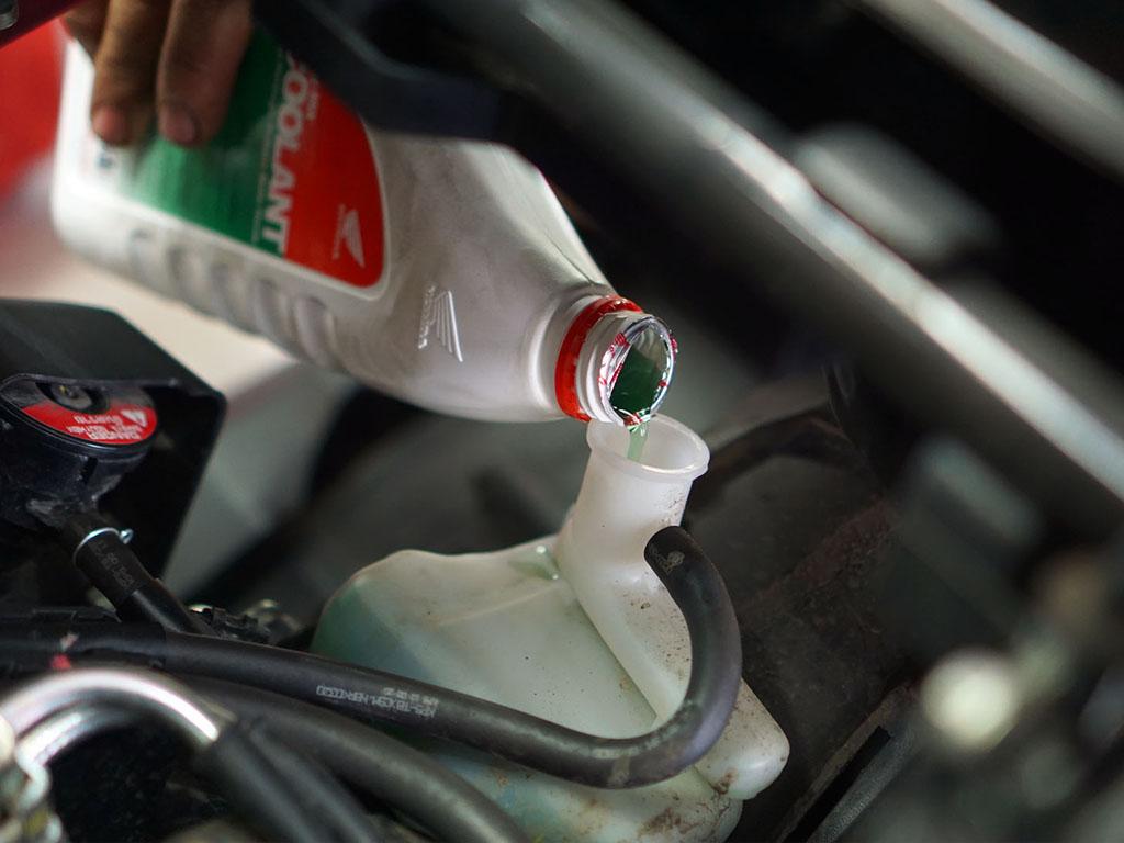 3. Bagi pengguna sepeda motor Honda, selalu menggunakan air coolant khusus yang di rekomendasikan yaitu ”Pre-Mix Coolant AHM” untuk menambah maupun mengganti air coolant. “Dilarang menggunakan air keran atau air mineral untuk mengganti cairan pada air coolant,” ujar Ade.