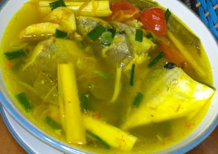 Jika bumbunya sudah harum dan kering, langsung memasukkan air secukupnya. Setelah airnya mendidih bisa dimasukan ikan yang dipilih.