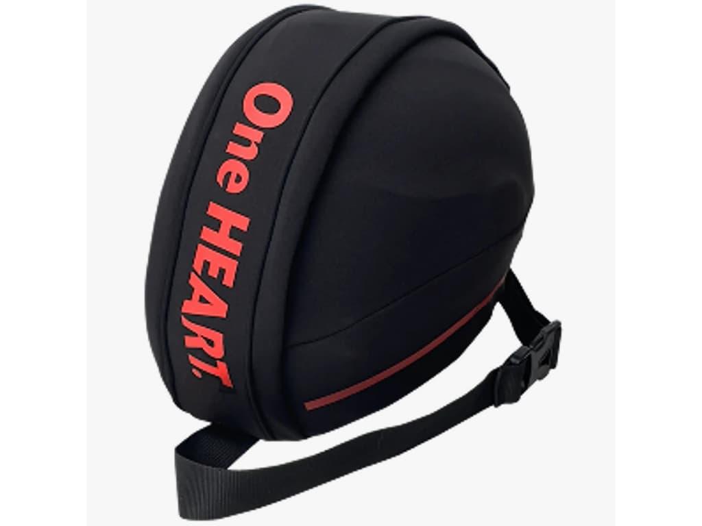 Apparel ini terbuat dari material yang tebal dan kuat, juga memiliki desain yang sporti dengan kombinasi warna hitam dan tulisan One Heart berwarna merah yang menggunakan finishing printing DTF yang kuat dan awet. Sehingga secara tampilan, tas helm ini akan terlihat modis ketika dibawa bepergian.