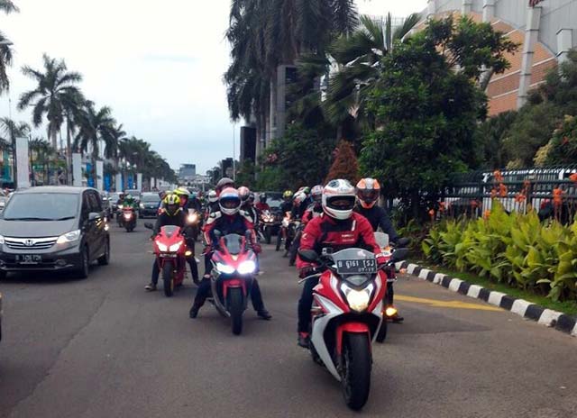Puluhan biker penunggang Honda CBR yang tergabung dalam beberapa komunitas Honda CBR yang ada di Jakarta melakukan kegiatan bersama degan tajuk “Fun Riding CBR Community” yang mana kegiatan ini dilaksanakan untuk menghadiri serta meramaikan acara launching All New Honda CBR 150R pada hari Sabtu (19/3) di La Piazza Kelapa Gading, Jakarta Utara yang digelar oleh Wahana Honda.