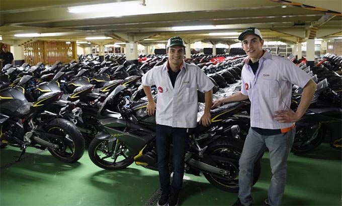 Karawang - Juara Dunia MotoGP 2016 Marc Marquez dan rekan satu timnya Dani Pedrosa bersama Direktur HRC Tetsuhiro Kuwata dan Livio Suppo sebagai Tim Principal, kembali datang ke Indonesia. Dalam agendanya kali ini mereka mengunjungi PT Astra Honda Motor (AHM) dan dua main dealer Honda (2/2).