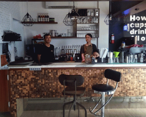 Cafe ini memang berkonsep tidak hanya untuk bikers, secara umum cafe ini berkonsep minimalis dengan suguhan makanan dan minuman yang kekinian.