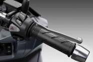 Model premium ini juga dilengkapi dengan suspensi belakang dual damper swing arm dengan 5 langkah pre-load yang dapat disesuaikan dan suspensi depan 33mm telescopic fork mampu menghadirkan pengendalian optimal.  ABS (Antilock Braking System) telah disematkan dengan diameter berukuran 240mm dengan 2 piston caliper untuk rem depan dan 1 piston caliper untuk rem belakang.